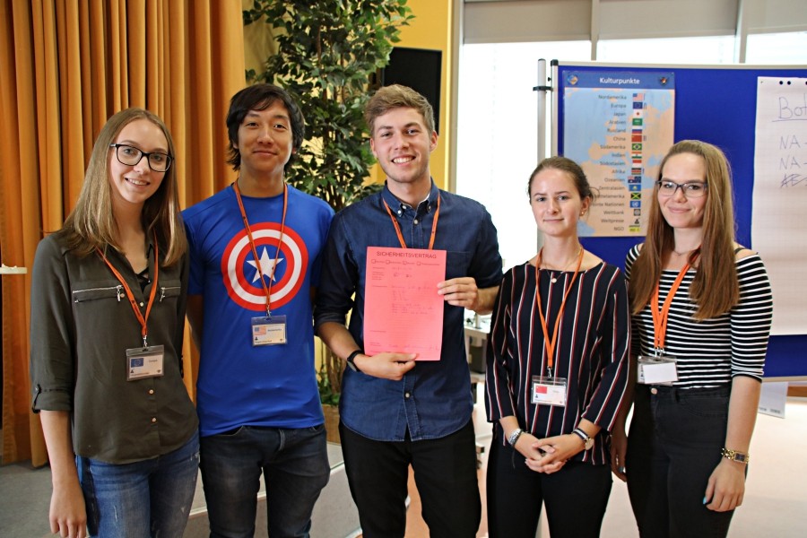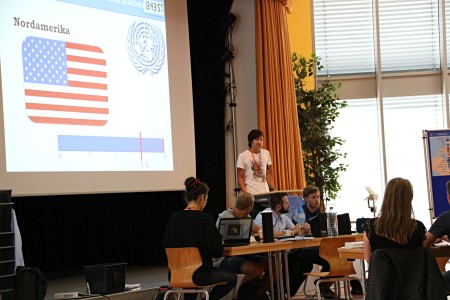 „Worum geht es denn da?“ Diese häufig gestellte Frage wurde für die Teilnehmer spätestens an der Einführungsveranstaltung am Montag, den 13. August, geklärt. Das Planspiel, das von der Bundeswehr angeboten wird, stellt eine Simulation dar, bei dem die Teilnehmer in die Rollen wichtiger Politiker verschiedener Länder, wie zum Beispiel in die des amerikanischen Regierungschefs schlüpfen können. Zusätzlich wurden noch die Rollen des UN-Generalsekretärs, der Weltbank, der NGO’s und der Weltpresse durch demokratische Wahlen am Montag besetzt. Bereits hier zeigte sich, dass die rhetorischen Fähigkeiten in den kommenden Tagen noch sehr entscheidend werden würden, denn die Kandidaten dieser wichtigen Positionen mussten sich natürlich erst einmal in einer kurzen Rede präsentieren. Am Dienstagmorgen ging es dann nach einer kurzen Einarbeitungszeit richtig los. Welche Verträge soll man schließen? Mit wem soll man einen Handel eingehen? Und müssen vielleicht irgendwelche zusätzlichen Räte einberufen werden? Diese Fragen mussten sich die Repräsentanten der verschiedenen Regionen (Europa, Nordamerika, Russland, Afrika, Arabien und China) stellen. Während der Verhandlungen versammelten sich jeweils alle Regierungschefs, Staatsminister und Wirtschaftsminister in den verschiedenen Räumen. Schnell wurde deshalb klar, dass Absprachen zwischen den Repräsentanten einer Region notwendig waren. Am Ende eines POL&IS Jahrs fand dann schließlich immer eine UN-Vollversammlung statt, bei der die Redner nach ihrer Präsentation mit kritischen Fragen konfrontiert wurden. Im Anschluss wurden in den POL&IS-Tagesthemen, die neuen Aufgaben und Konflikt aufgezeigt, die es im kommenden POL&IS-Jahr neben den ständigen Herausforderungen (wie die Überschreitung der Umweltgrenzwerte und den Mangel an Agrar- und Industriegütern zu verhindern) zu bewältigen galt. Diese aktuellen Probleme besaßen stets einen starken Realitätsbezug, wie beispielsweise die Flüchtlingskrise in Europa oder die Kindersoldaten in Afrika. In den drei Tagen wurde den Teilnehmern die Komplexität der internationalen Beziehungen bewusst und wie entscheidend Kooperation, Zusammenarbeit und Ursachenbekämpfung in internationalen Problemen ist. Allerdings war auch erkennbar, wie schnell Konflikte eskalieren können und so wurden beispielsweise Atomwaffen von Europa und Russland an die Grenze von Arabien gestellt. Nach dem 3. POL&IS-Jahr endete das Planspiel. Zuvor wurde noch ein UN-Klimagipfel abgehalten und dann wurde die letzte UN-Generalversammlung dazu genutzt, in einer letzten Rede, die Errungenschaften der eigenen Amtszeit darzulegen. Jedoch wurde diese auch von einigen aufgebrachten Bürgern (an dieser Stelle ein Dankeschön für alle beteiligten Mitschüler) gestört, welche gegen Nordamerika und Russland protestieren wollten, da auf Schlagzeilen der Weltpresse wie „Mord durch Mord vergelten“ und „Keine Entschädigung für grundlos inhaftierte Homosexuelle?“ keine Reaktion seitens der Regierungschefs folgte. Sicherlich ist – so wie auch in der Realität- nicht alles so gelaufen, wie geplant, allerdings konnten auch viele Erfolge verzeichnet und Krisen gelöst werden. Das Fazit der teilnehmenden Schüler war eindeutig: POL&IS war eine interessante Erfahrung, bei der jeder ein Stück Verantwortung übernehmen musste. Man hat erkannt, wie wichtig Kommunikationsfähigkeit und Kooperation in der Politik ist. Ein besonderer Dank gilt auch den Jugendoffizieren Daniel Beck und Olly, die das Ganze geleitet haben und für alle Fragen bereitstanden. Durch ihre eigenen Erzählungen wurde das Planspiel besonders lebendig.