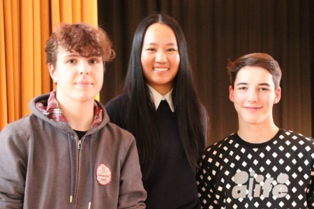 Im diesjährigen Poetry Slam drehte sich alles um das Thema „Solidarität“. Schnell wurde deutlich, wie viel Unterschiedliches die Kandidaten mit diesem Begriff verbinden. Jeder Text beschäftigte sich mit anderen Aspekten zu diesem Thema, denn Solidarität kann man sehr vielfältig definieren. Teilnehmen kann man beim Poetry Slam ab der 10. Klasse und so trugen bereits die ersten beiden Kandidatinnen Leonie Land (10d) und Leonie Ortseifen (10e) beeindruckende Texte zu dem Thema vor. Auch die Klasse 10b hatte gemeinsam einen Beitrag erarbeitet, welcher sich an dem Lied „Same Love“ von Macklemore orientierte und von Alina Schneider im Namen der Klasse präsentiert wurde.