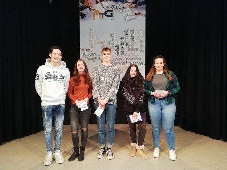 Am 17. Dezember dieses Jahres ging der Poetry Slam des MTG wieder in eine neue Runde. Diesmal lautete das Thema „Menschenrechte“ - passend zum Internationalen Tag der Menschenrechte, welcher eine Woche zuvor gefeiert wurde, da an jenem Tag vor 70 Jahren die allgemeine Erklärung der Menschenrechte von den Vereinten Nationen verabschiedet worden war. Anders als in den Jahren zuvor, konnten in diesem Jahr auch Schülerinnen und Schüler der 9. Klasse am Poetry Slam teilnehmen. Dies entpuppte sich als eine großartige Neuerung, da so die beiden 9. Klässlerinnen Mia Müller (9a) und Yasmina Oulmaati (9b) den Mut hatten, sich gemeinsam als Team anzumelden und am Ende sogar den 2. Platz erreichten. Dies gelang ihnen durch einen Beitrag, welcher die Jury durch große Emotionalität und eine authentische Vortragsweise überzeugen konnte. Dabei konzentrierten die beiden sich inhaltlich besonders auf das Miteinander von Menschen, welches durch Respekt und Toleranz gekennzeichnet sein sollte, damit das Recht jeder Person auf Gleichbehandlung, Freiheit und Sicherheit gewahrt wird. Ebenfalls neu war, dass der 2. Platz dieses Jahr durch einen Punktegleichstand doppelt vergeben wurde. So durfte sich auch Klee (Alexander) Arenz (12 SkL1) über eine Zweitplatzierung freuen. Sein Poetry Slam Beitrag „Leute machen Kleider“ beschäftigte sich - wie der Titel vermuten lässt - mit der Kleidungsindustrie und besonders mit „Billigkleidung“, welche von ihm aufgrund der menschenverachtenden Produktionsbedingungen, unter denen Arbeiter*innen die Kleidung nähen, kritisiert wurde. Zum Schluss appellierte er an die Zuschauer, den eigenen Konsum zu hinterfragen und sich beim Kauf solcher Produkte seiner Verantwortung bewusst zu werden. Dabei betonte er besonders, dass man selbst als Einzelner einen großen Einfluss hat, wenn man seine Kaufgewohnheiten verändert.Den 1. Platz belegte Chantal Jakobi (12 BL1) mit ihrem Beitrag über die Menschenrechtsverletzungen während der Militärdiktatur in Chile von 1973 bis 1990. Sie wurde auf dieses Thema in ihrem Spanischunterricht aufmerksam und war von den grausamen Geschehnissen und Schicksalen stark ergriffen. Es ist ihr ein großes Anliegen, den Geschichten der Menschen, die so unter dieser Situation litten, Gehör zu verschaffen. Und dieses Gehör verschaffte sie sich auch, indem sie die Zuschauer mit ihrem emotionalen Beitrag, der die wahren Leidensgeschichten chilenischer Menschen erzählte, in ihren Bann zog und durch rhetorische Raffinesse berührte. Dabei klagte sie auch über die fehlende Aufklärung in Deutschland über solch schlimme Taten in anderen Staaten, betonte die Wichtigkeit, über solche Ereignisse Bescheid zu wissen sowie die Notwendigkeit, über den nationalen Tellerrand hinauszuschauen. Zusammenfassend lässt sich also sagen, dass der diesjährige Poetry Slam wieder mit tollen, emotionalen und ergreifenden Beiträgen punkten konnte. Ein besonderer Dank gilt allen Teilnehmerinnen und Teilnehmern, die viel Arbeit und Mühe in ihre Texte steckten und diese wundervoll vortrugen.