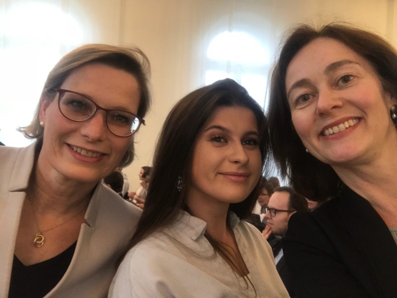 Wir wurden warm mit Getränken empfangen, als es um 16:30 Uhr dann losging. Die Gäste wurden von unserer geschäftsführenden Bundesministerin für Familie, Senioren, Frauen und Jugend Dr. Katharina Barley und unserer Bildungsministerin RLP Dr. Stefanie Hubig willkommen geheißen. Nach einem musikalischen Einstieg und einer kurzen Einführung wurden wir als zweite engagierte Gruppe von der Jury, genauer Frank Schnadthorst, für unser Engagement sehr gelobt. Der Abend verlief sehr entspannt und gab uns viel Inspiration für weitere Projekte in der Zukunft.