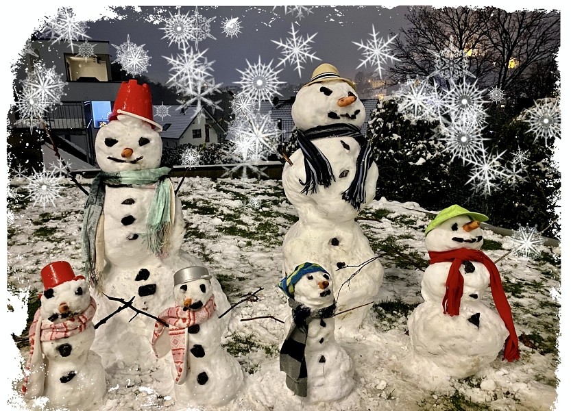 Da kann auch die schönste winterliche Schneelandschaft nicht locken. Doch der Aufruf an die Klassen 10c, 10d und 6f, an die frische Luft zu gehen und im klasseninternen Wettstreit Schneefiguren zu bauen, brachte Schwung ins Geschehen. So wurden über 30 Bilder von Schneefrauen, -männern, -tieren und ganzen Schneefigurfamilien eingereicht und die Schülerinnen und Schüler durften abstimmen, welche Figuren die schönsten sind (oder waren ;-)). Alle Siegerfiguren präsentieren wir hier, und ihre Erbauerinnen und Erbauer dürfen sich über eine Belohnung freuen.