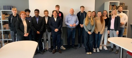 Diesmal durfte der Sozialkunde-Leistungskurs aus der Jahrgangsstufe 11 Jennifer Groß (CDU), Susanne Müller (SPD) und auch Joachim Paul (AfD) im Konferenzraum unserer schuleigenen Bibliothek willkommen heißen. Der Kurs rund um Frau Mohr war sehr gut auf das Gespräch mit den Politikern vorbereitet und konfrontierte sie mit einigen, teils auch unbequemen Fragen. Nachdem sich die Fragen zunächst darum drehten, wie die Abgeordneten ihren Weg in die Politik fanden, fokussierte sich das Gespräch mit der Zeit mehr und mehr auf Joachim Paul, der von den Schülern des Kurses sehr kritisch bezüglich einzelner von ihm getätigter Aussagen sowie verschiedenster Eklats seiner Partei befragt wurde. Aufgrund dessen war es den Schülern nicht möglich, die Vielzahl an vorbereiteten Fragen zu den Sachthemen wie Bildungspolitik oder den Umgang der Politik mit Krisen zu stellen. Obwohl die Zeit einer Doppelstunde deutlich zu knapp war, zogen sowohl die Jugendlichen als auch die Politiker ein positives Fazit, da man sehr schnell miteinander ins Gespräch kam und alles immer auf einer respektvollen Basis stattfand.