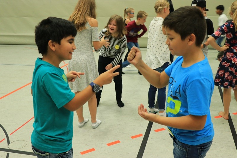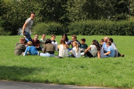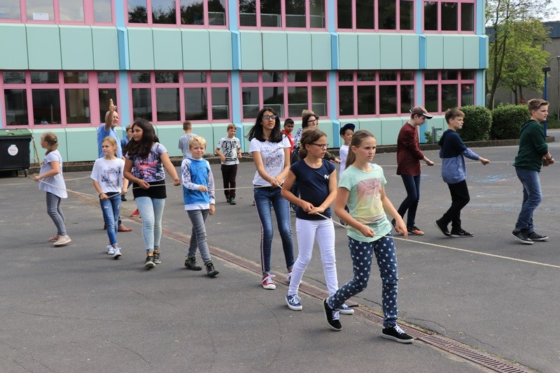 Um allen „GTSlern“ den Schulanfang zu erleichtern und die Bildung einer Gemeinschaft zu fördern, boten die Erlebnispädagogen Timo Schattner und Jessica Fischbach von der Kreisverwaltung, unterstützt vom GTS-Team, zwei Nachmittage mit einem bunten Programm an Kennenlern- und Kooperationspielen an. Die Neuen blieben dabei zunächst unter sich, um sich zu beschnuppern und gemeinsam Herausforderungen zu meistern. Am zweiten Nachmittag hatten dann alle GTS-Schüler zusammen viel Spaß bei den Spielen, die in der Sporthalle und auf dem Schulhof stattfanden.