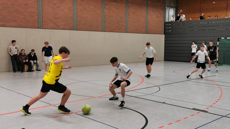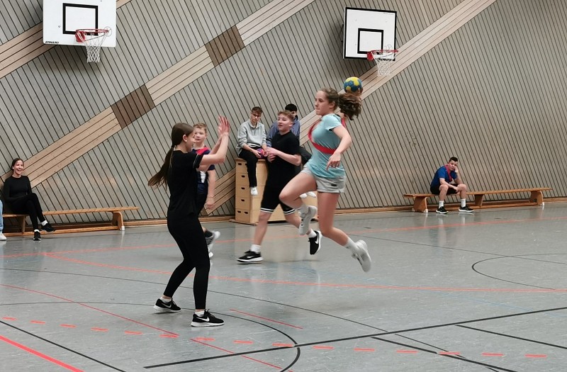 Die SchülerInnen waren – im Anschluss an den regulären Schulunterricht – zeitig in die Hallen geströmt, um sich auf die Sportspiele vorzubereiten. Pünktlich um 13.15 Uhr ging es dann los mit einem Fitness-Workshop im Gymnastikraum sowie mit Fußball, Handball, Basketball und Volleyball in den großen Hallen.Hier zeigten sich motivierte und energisch kämpfende Klassen, die auch von der Tribüne lautstark unterstützt wurden. Sämtliche Sportspiele wurden in diesem Jahr von den SchülerInnen der Sport-Leistungskurse geleitet, herzlichen Dank für das Engagement!