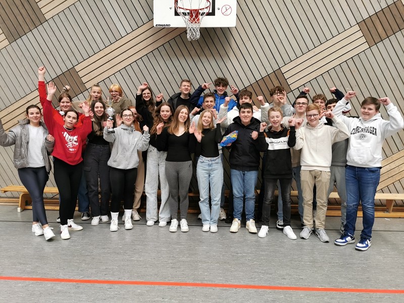Beim 9er-Cup konnte sich schließlich die Klasse 9a durchsetzen. Beim 10er-Turnier gewann die Klasse 10b. Gegen 16.45 Uhr versammelten sich noch einmal alle SchülerInnen in der neuen Halle, um an der Siegerehrung teilzunehmen.