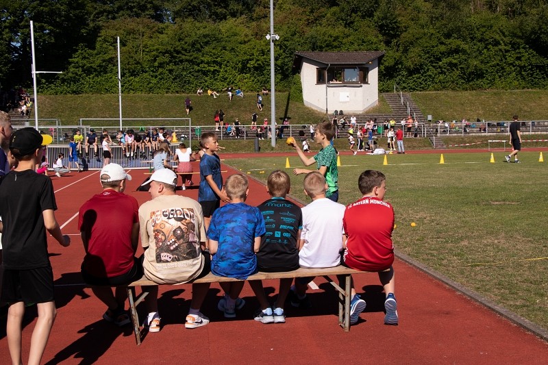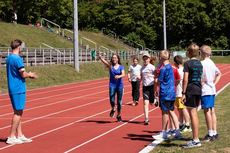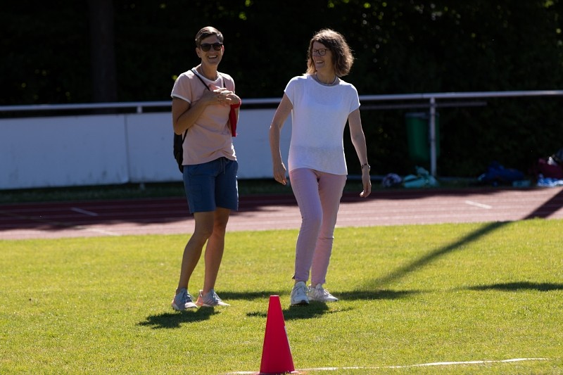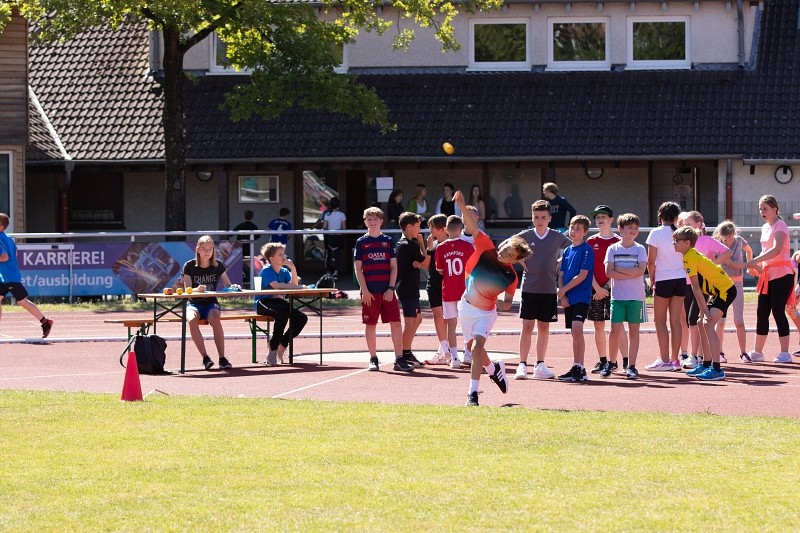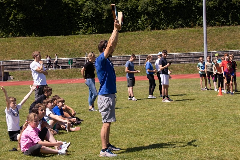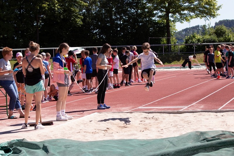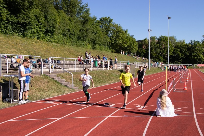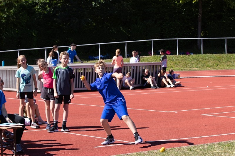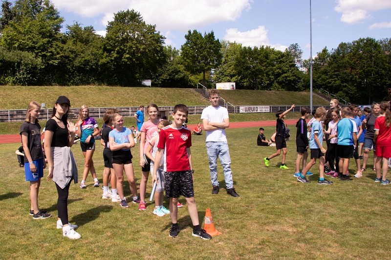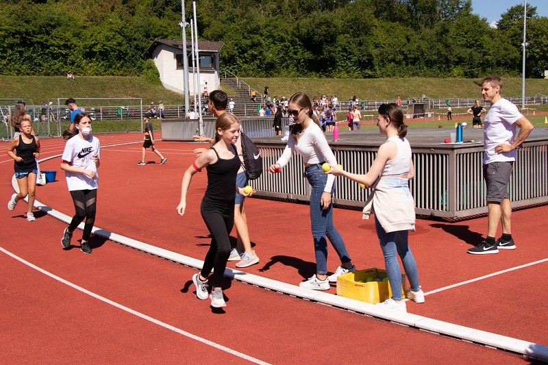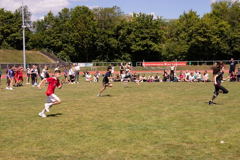 So konnte die Fachschaft Sport am 04.06.2022 bei schönstem Wetter ein Sportfest für die Jahrgangsstufen 5 und 6 organisieren, bei dem die Schüler im Klassenverband neben den klassischen leichtathletischen Disziplinen Weitsprung, 50m-Lauf und Weitwurf auch im Tennisballlauf ihre sportlichen Fähigkeiten unter Beweis stellen konnten. Besonders die Pendelstaffel, bei der ausgewählte Schüler einzelner Klassen gegeneinander antraten, heizte den Wettbewerb an und sorgte für ein bewegungsintensives, lautstark bejubeltes Finale.