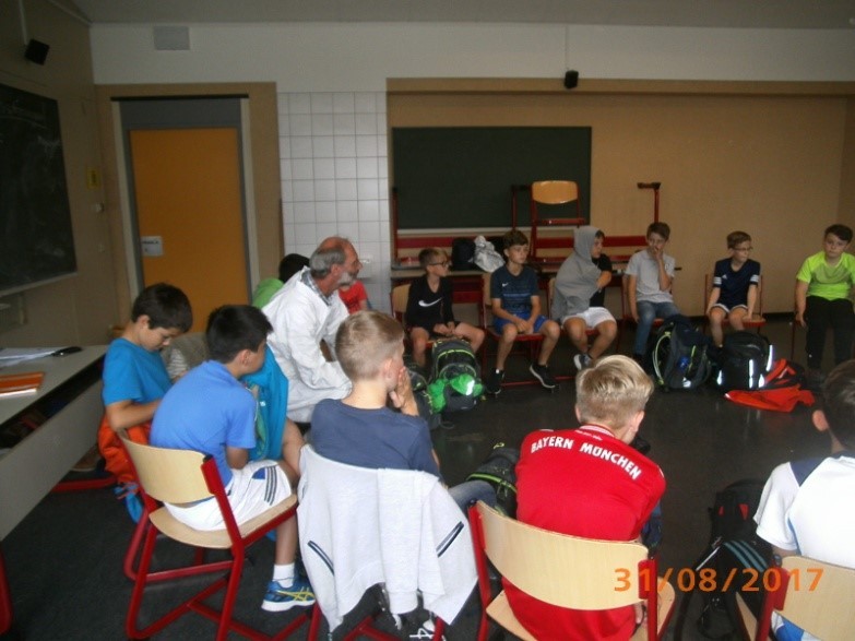 Danach haben wir ein bisschen Sport gemacht, nämlich Karate. Herr Kuhmann, unser Projektleiter, war sehr freundlich und sagte, dass wir respektvoll miteinander umgehen sollen. Zuerst lernten wir den „Kibadashi“, den sicheren Stand, danach den „Oizuki“, den einfachsten Schlag. Wir haben das später paarweise geübt.