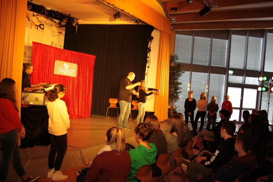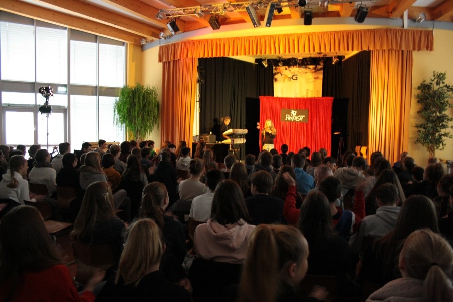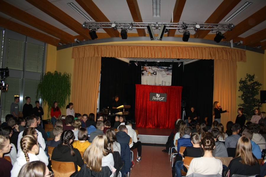 Am 31.10.2018 fand ein Suchtpräventionstag für unsere gesamte Klassenstufe 9 statt. Dabei sahen wir in den ersten 2 Stunden des Projektes das Improvisationstheater des Theaters "RequiSIT" und durften dabei die Schauspielkünste der ehemals drogenabhängigen Schauspieler kennenlernen. Mit großem Erfolg! Die Schauspieler haben uns sehr begeistert, was man an unserem starken Applaus erkennen konnte. Egal, ob Wörter, die wir Ihnen vorschlagen sollten, oder Sätze, die wir Schüler vollenden durften, das Team "RequiSIT" hat all unsere Stichworte in Improvisationsstücke umgesetzt.