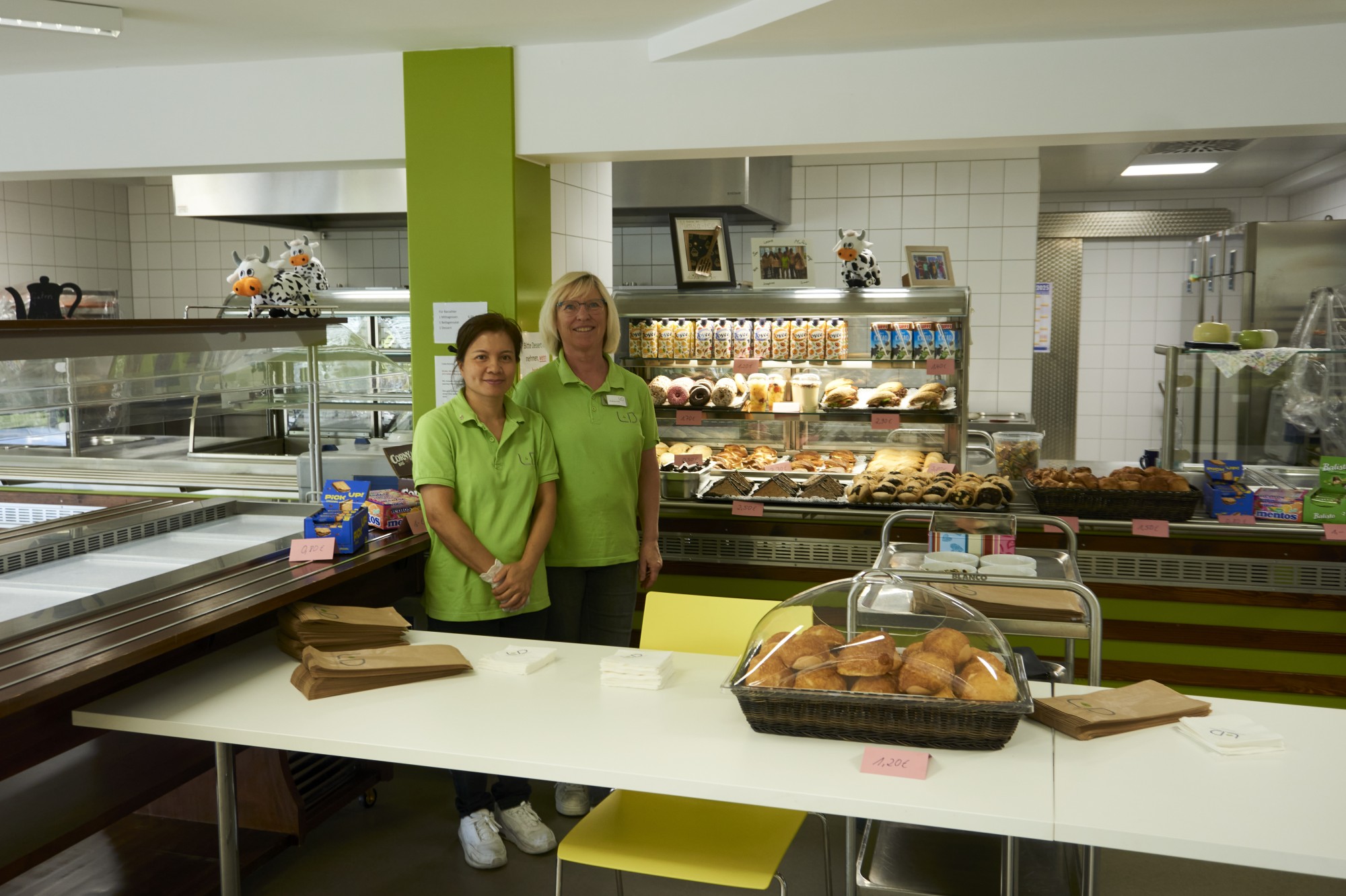 Für das leibliche Wohl war in der Mensa gesorgt, wo das Team aus L+D-Mitarbeiterinnen, Lehrkräften und Schülerinnen und Schülern mit Kaffee, Kuchen und Würstchen bestens aufgestellt war – ein Angebot, das großen Anklang fand.