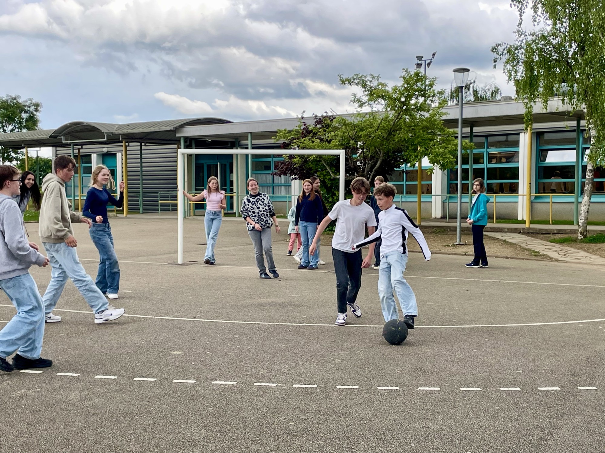 Auch am Donnerstag und Freitag besuchten uns die Corres in der Schule. Die Nachmittage verbrachten sie mit ihren Gastfamilien. Ob beim gemeinsamen Sport, bei Ausflügen oder einfach bei Brettspielen zu Hause – es zeigte sich schnell, wie hilfreich gemeinsame Aktivitäten für die Kommunikation und das gegenseitige Verständnis sind. Das anfängliche Heimweh der französischen Gäste verflog bald, und sie gewöhnten sich zunehmend an ihr neues Umfeld.