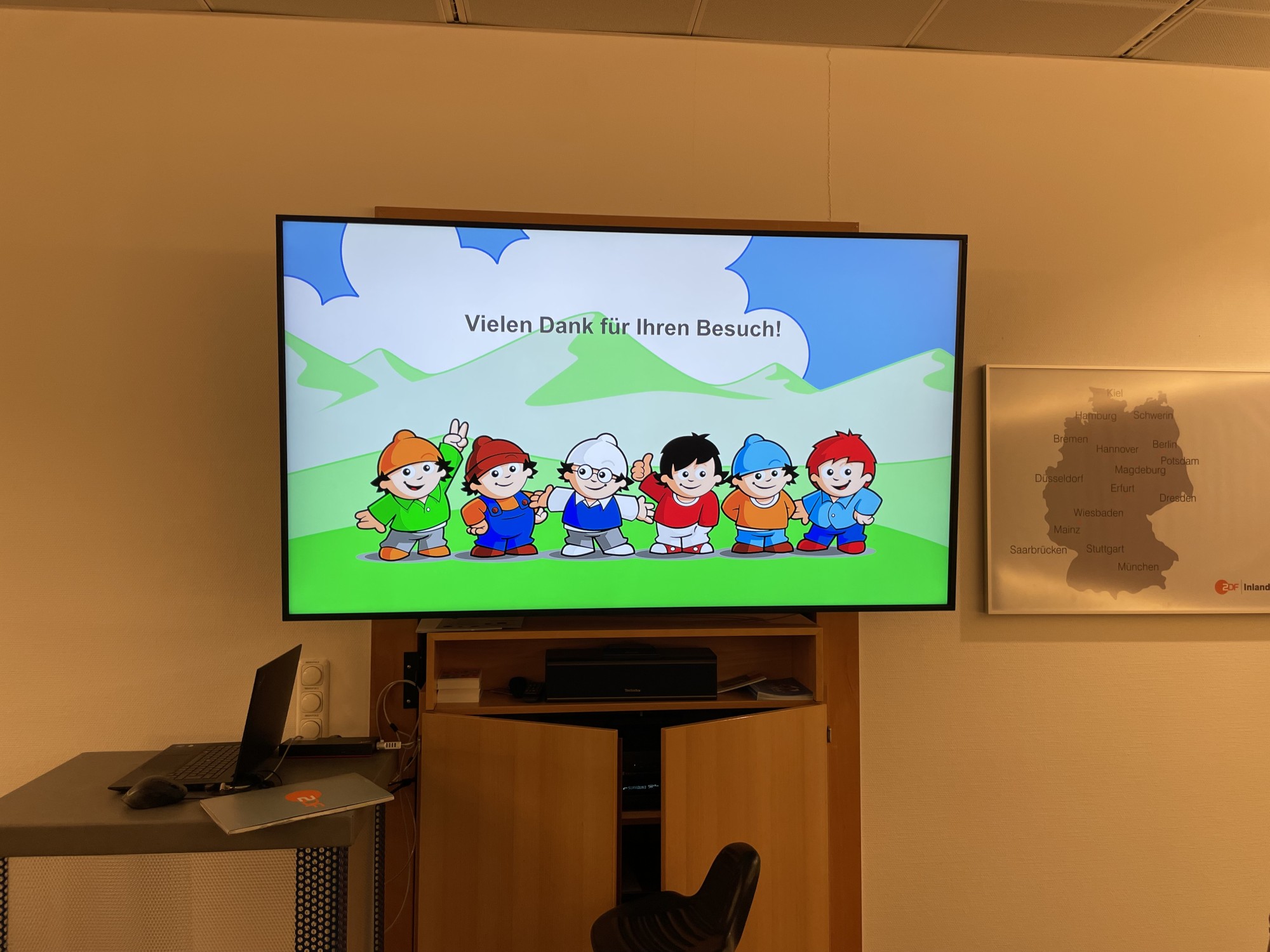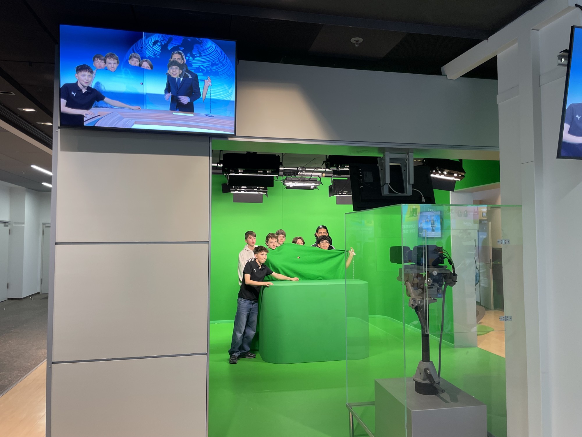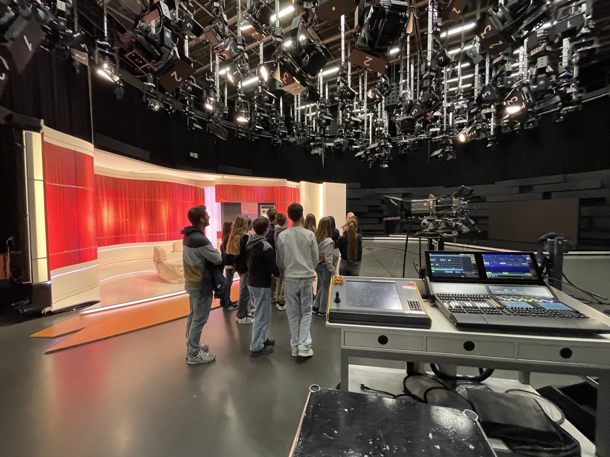 Anschließend besuchten wir das ZDF-Studio und nahmen an einer Führung teil – diese wurde sowohl auf Deutsch als auch auf Französisch angeboten. Wir erhielten spannende Einblicke hinter die Kulissen des Fernsehsenders und lernten einige Tricks kennen, mit denen sich der Arbeitsalltag dort einfacher gestalten lässt. Nach diesem gelungenen Tag fuhren wir mit dem Bus nach Hause – die Corres mussten schließlich ihre Koffer für die Rückreise packen.