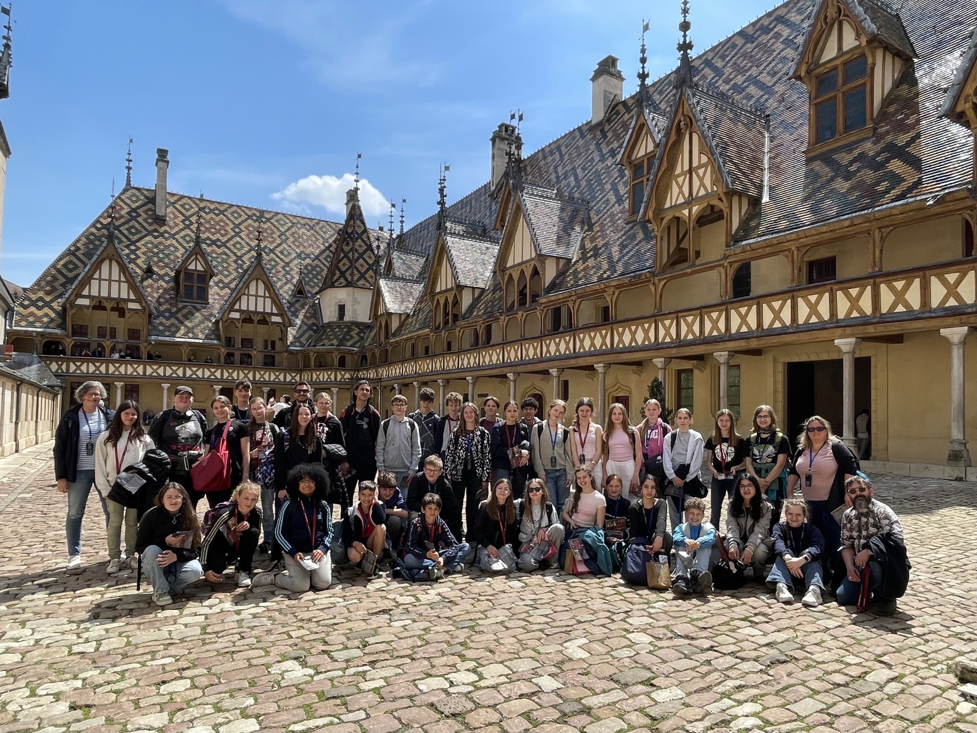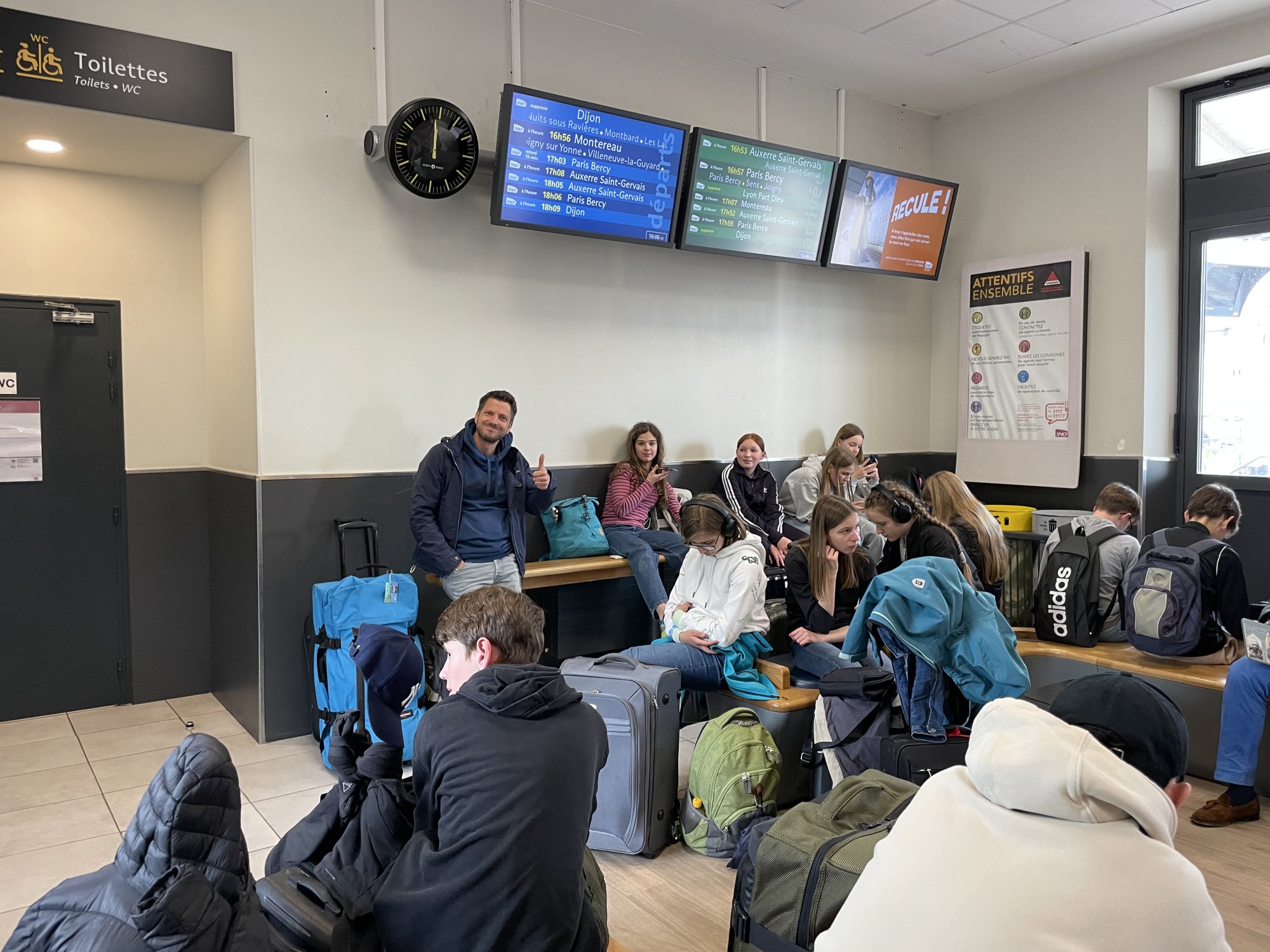 Am Dienstag, dem 6. Mai 2025, trafen wir uns um 7:35 Uhr am Bahnhof in Montabaur – voller Vorfreude auf die bevorstehende Woche. Die Anreise verlief nicht ganz reibungslos, aber als wir in Frankfurt umstiegen, stieg die Aufregung – wir saßen im Zug nach Paris! Dort angekommen, hieß es: Treppen rauf, Treppen runter – und das alles mit schwerem Gepäck. Doch schließlich erreichten wir, zum Glück vollzählig, den Zug nach Tonnerre.