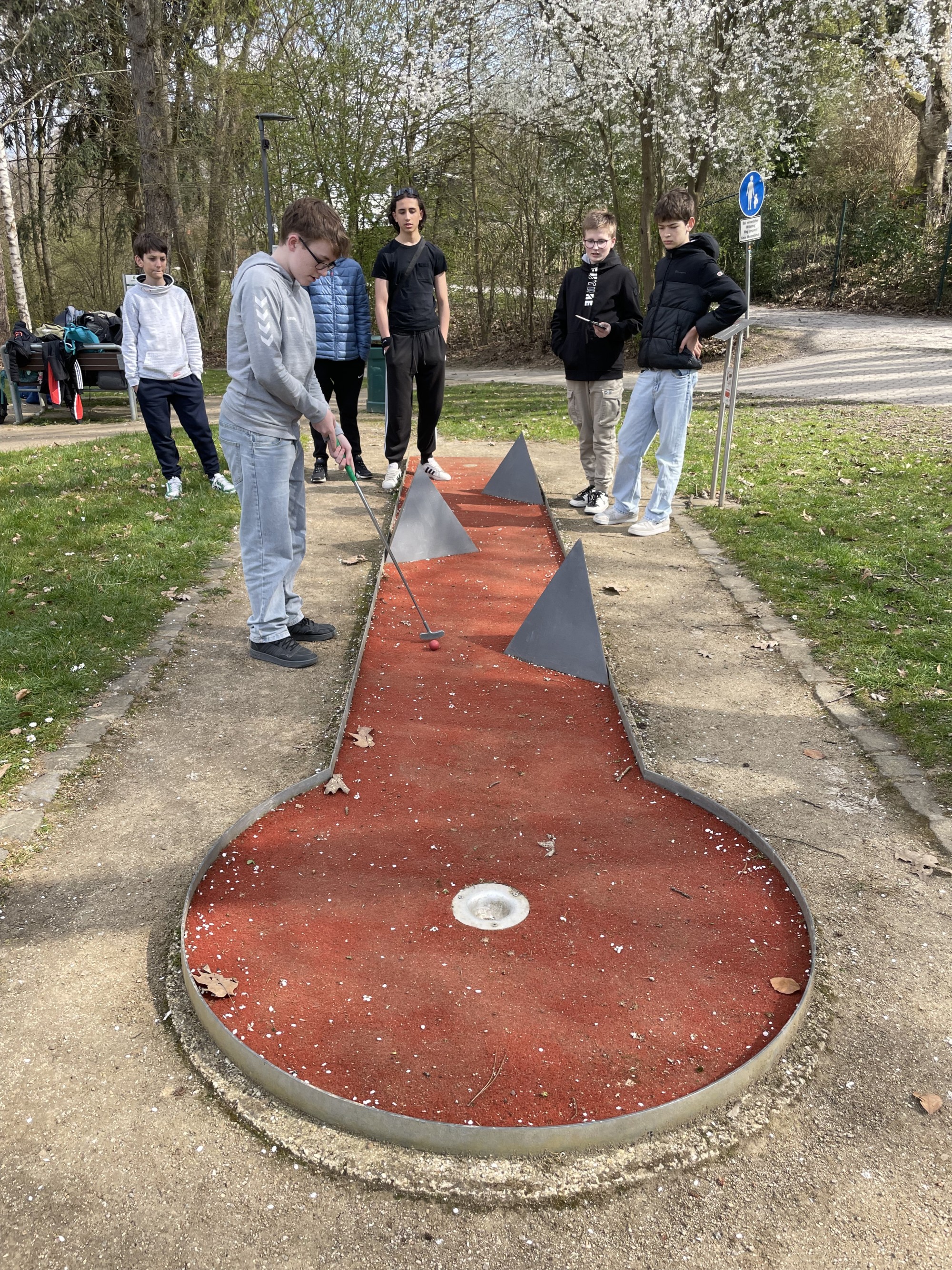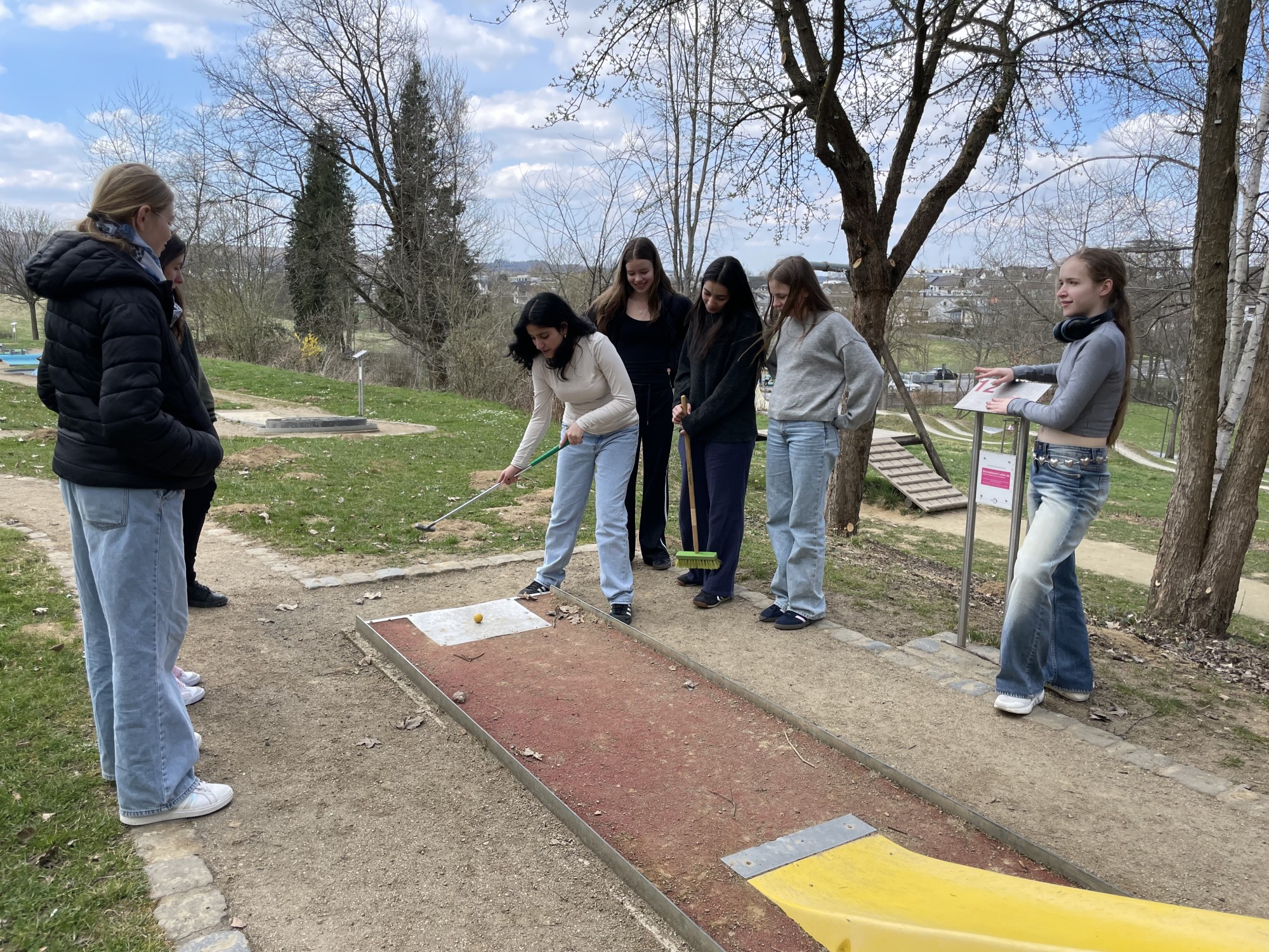 Am nächsten Tag, einem Mittwoch, begleiteten uns die Corres in die Schule und wurden dort herzlich von unseren Lehrkräften begrüßt. Nach dem Mittagessen in unserer Mensa ging es gemeinsam zum Minigolfen auf den Quendelberg – ein Programmpunkt, der den französischen Gästen sichtlich Spaß bereitete.
