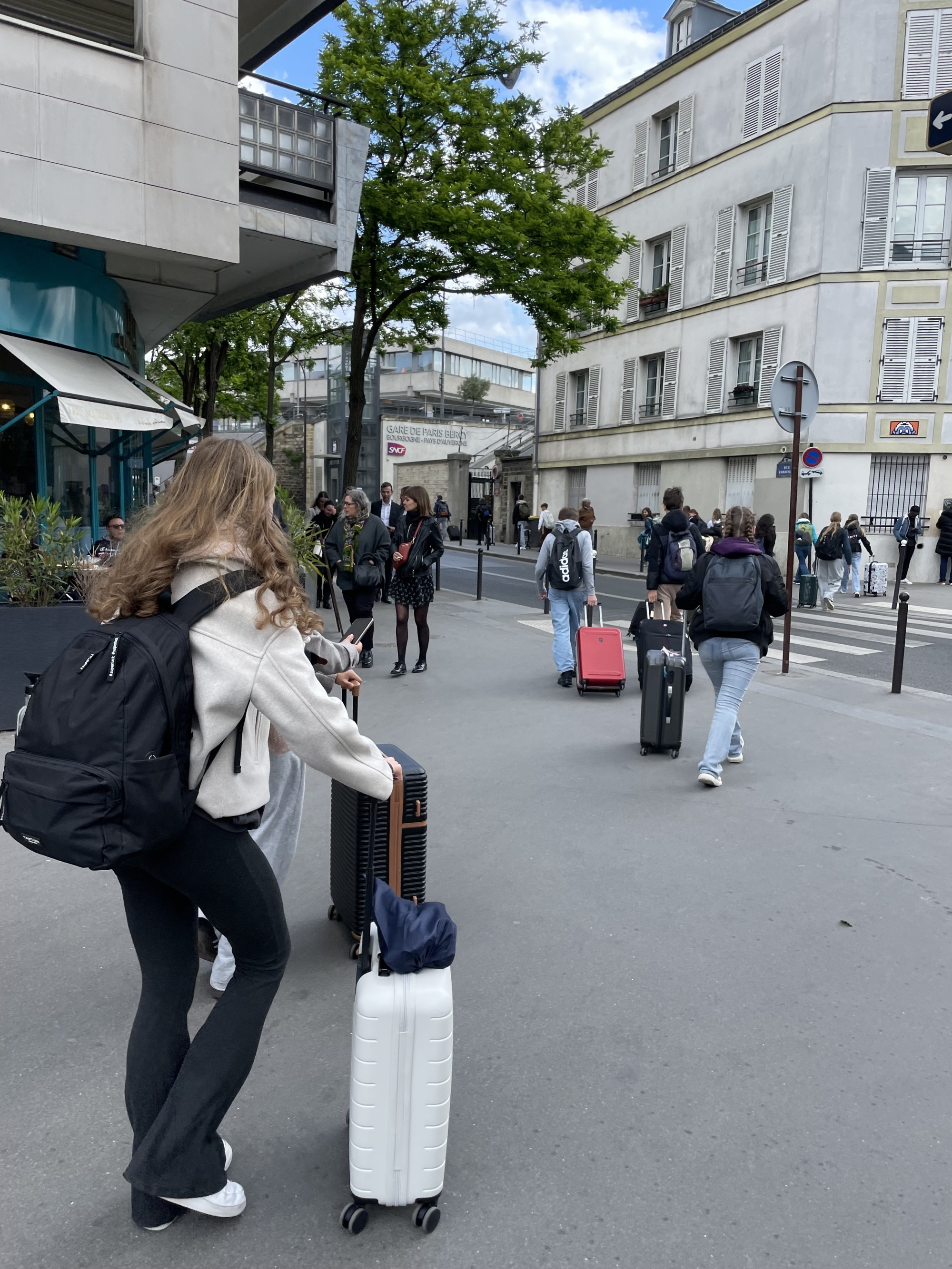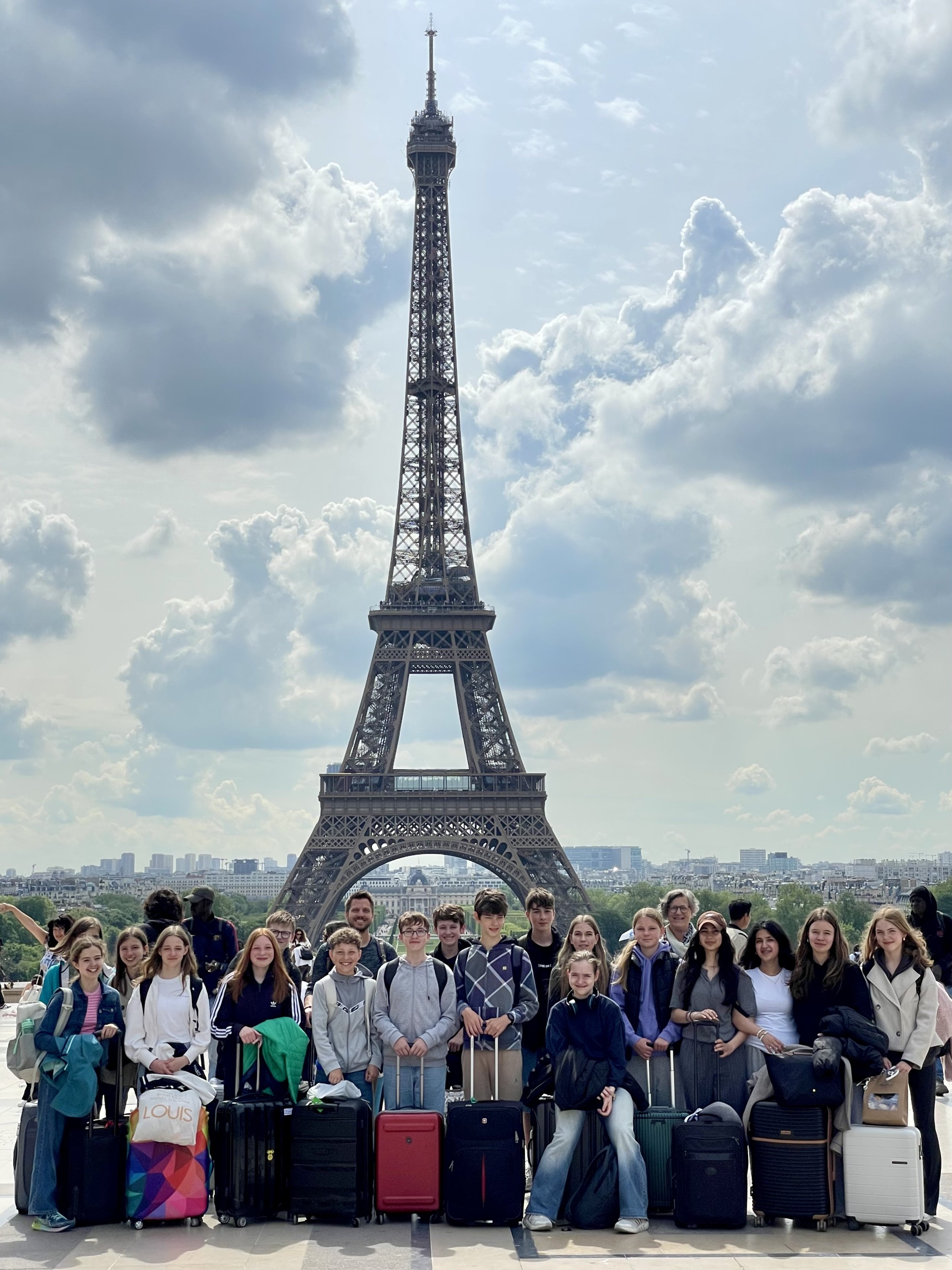 Am Dienstagmorgen mussten wir früh aufstehen. Während unsere Austauschpartnerinnen zur Schule gingen, trafen wir uns gegen 8:00 Uhr am Bahnhof in Tonnerre. In Paris hatten wir eine längere Umsteigezeit – und unsere Lehrerinnen überraschten uns mit einem kurzen Ausflug zum Eiffelturm! Dort hatten wir etwa eine Stunde Zeit, um Fotos zu machen und den Blick auf das Wahrzeichen zu genießen – ein echtes Highlight!