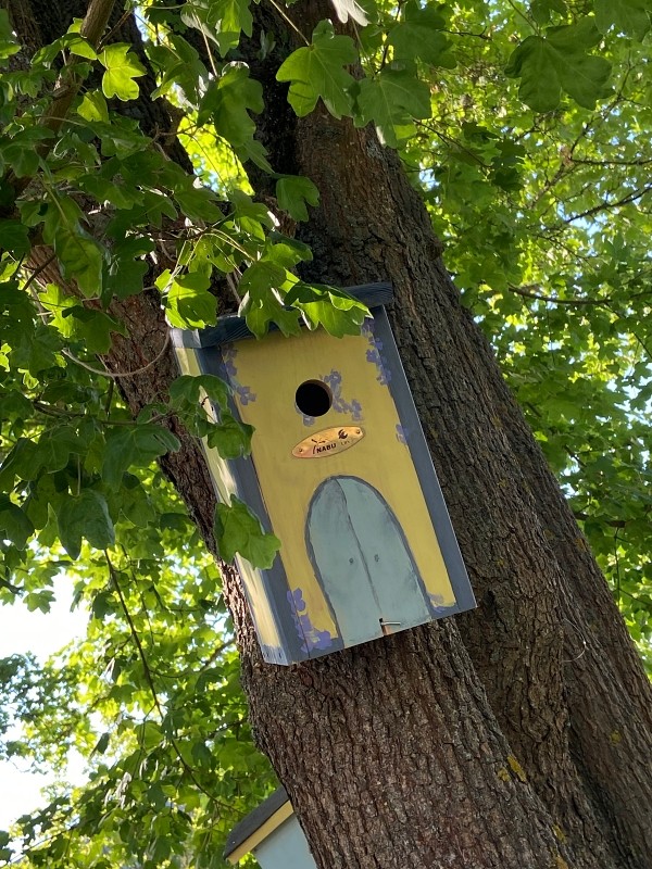 „Besonders gut gefallen hat mir, dass wir unsere Ideen nicht nur auf Papier weiterentwickelt haben, sondern die Insektenhotels usw. auch wirklich gebaut haben und so der Umwelt geholfen haben. Am meisten hat es mir gefallen als Luisa und ich das Vogelhaus gestrichen haben. Wir haben es hellblau mit weißen Wolken angemalt. Beim Bauen gab es Schwierigkeiten, aber Kais Opa hat uns gezeigt, wie man den Nagel richtig reinhaut. In dem Moment ist mir auch wieder eingefallen, dass man erst den Nagel festhält und leicht darauf haut und man dann richtig feste darauf haut. Es ist schön, dass wir im Garten den Efeu und alles andere wegmachen konnten, damit man den Platz wieder nutzen kann. Vielleicht können wir auch mal im Draußen-Klassenzimmer Unterricht machen. Der Tag war etwas anstrengend, aber es hat sich sehr gelohnt. Ich bin froh, dass alles geklappt hat.“ Mayah