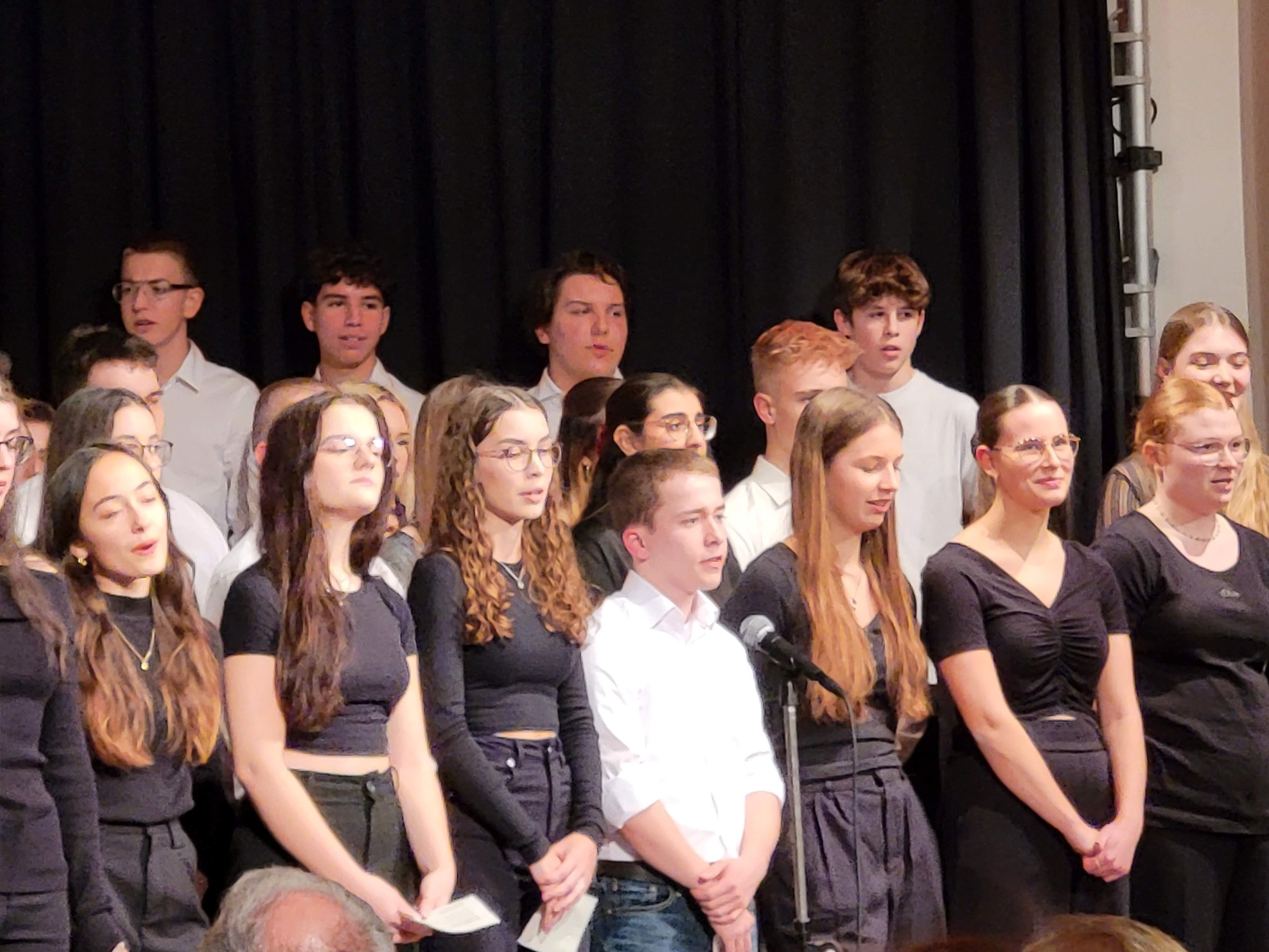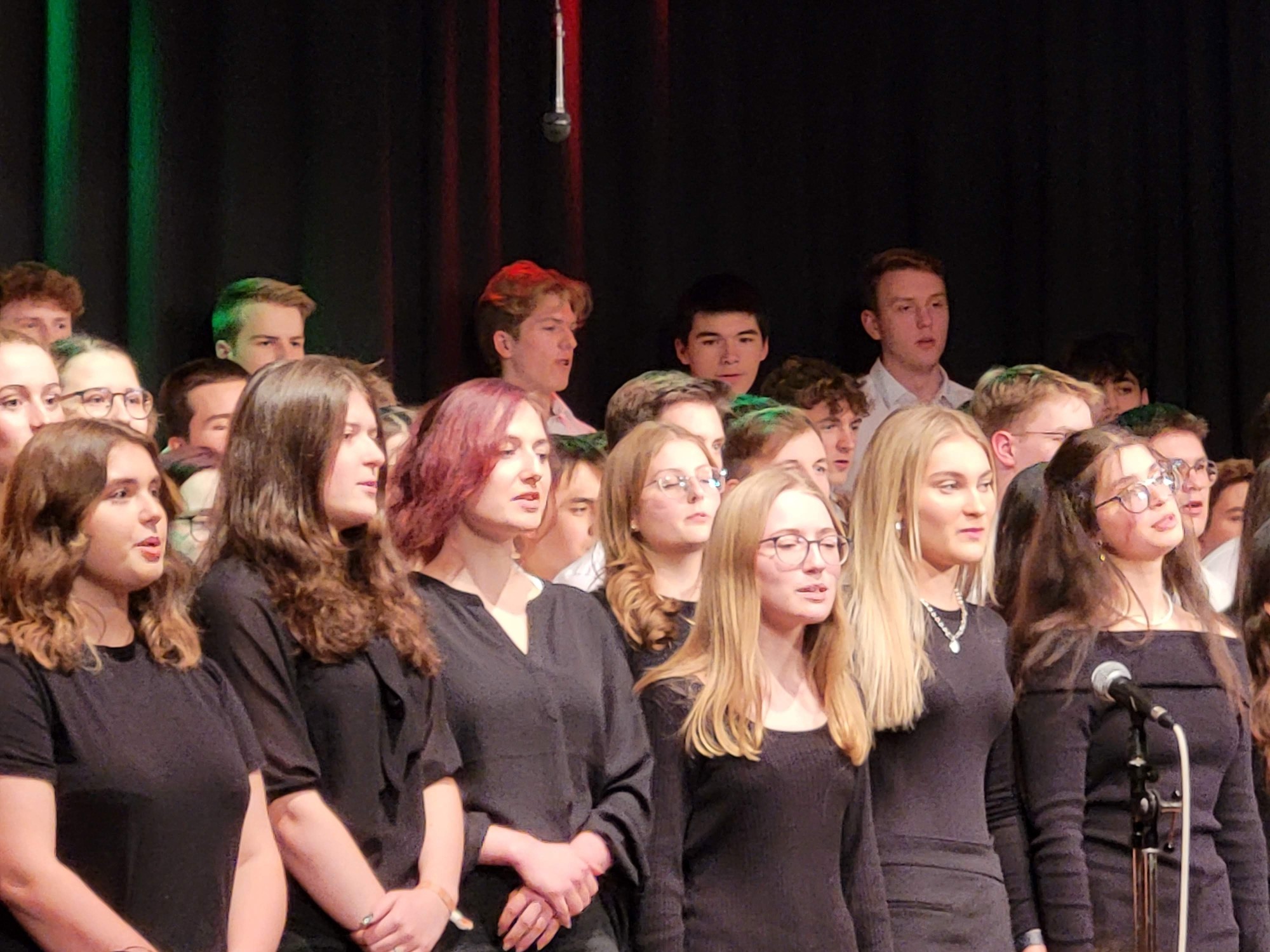 Von den „ganz Kleinen“ ging es nun zu den „ganz Großen“, denn der Oberstufenchor (Leitung: Daniela Dott) präsentierte gekonnt drei weltliche Stücke, die mit dem Lied „Count on me“ von Bruno Mars zweistimmig ihren Höhepunkt fanden.
