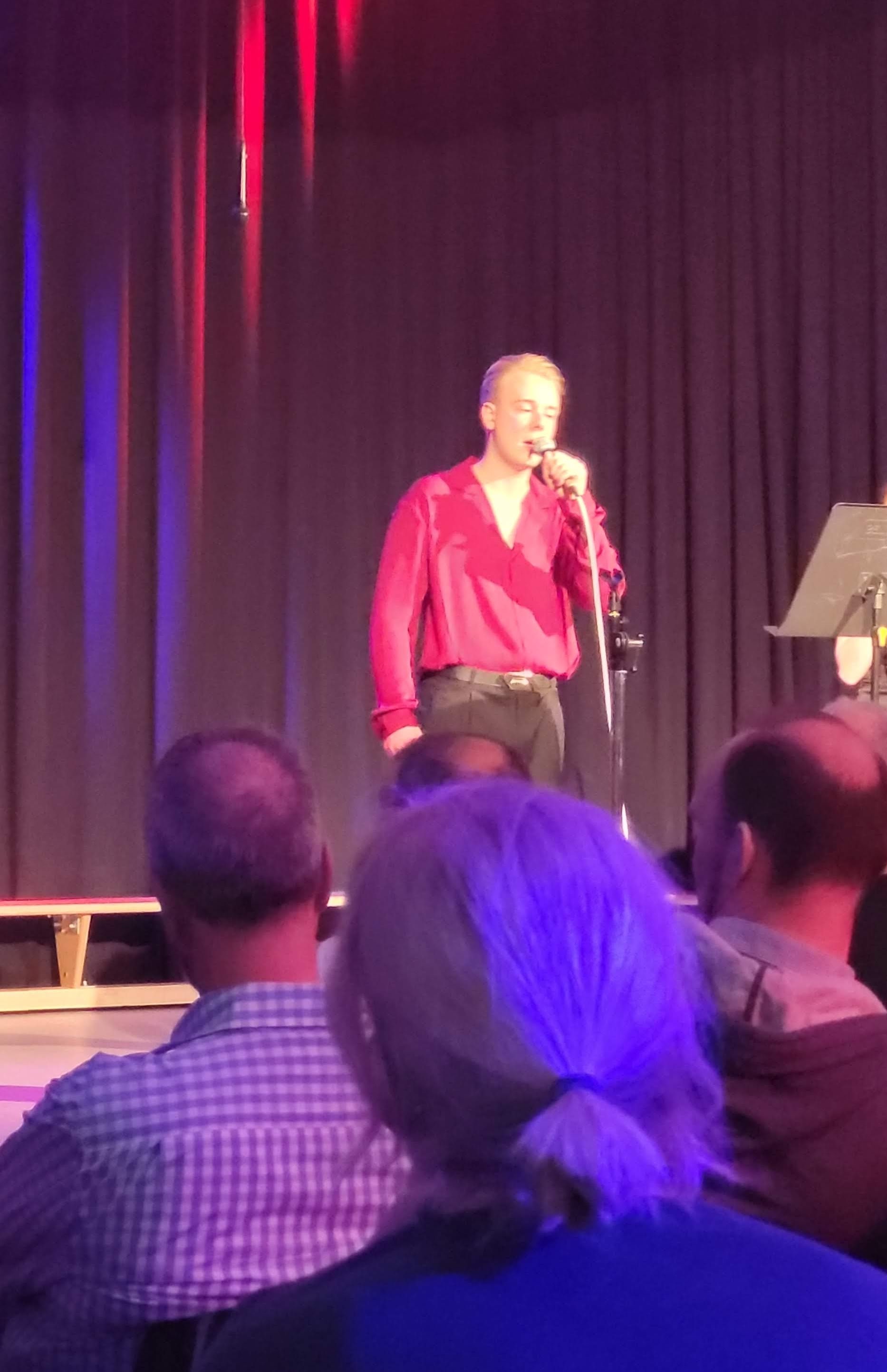Im Anschluss konnte man das Stück „Halleluja“ von Leonard Cohen fabelhaft gesungen von Eva Frink (11. Klasse) und Maxim Chetchouga (13. Klasse) als Duett genießen. Der Grundkurs Musik 13 (Frau Dethof) präsentierte im Anschluss drei weltliche Stücke, und konnte durch seine gute Bühnenperformance mit dem Stück „Hit the road Jack“ die Zuhörer noch einmal aus der Reserve locken.