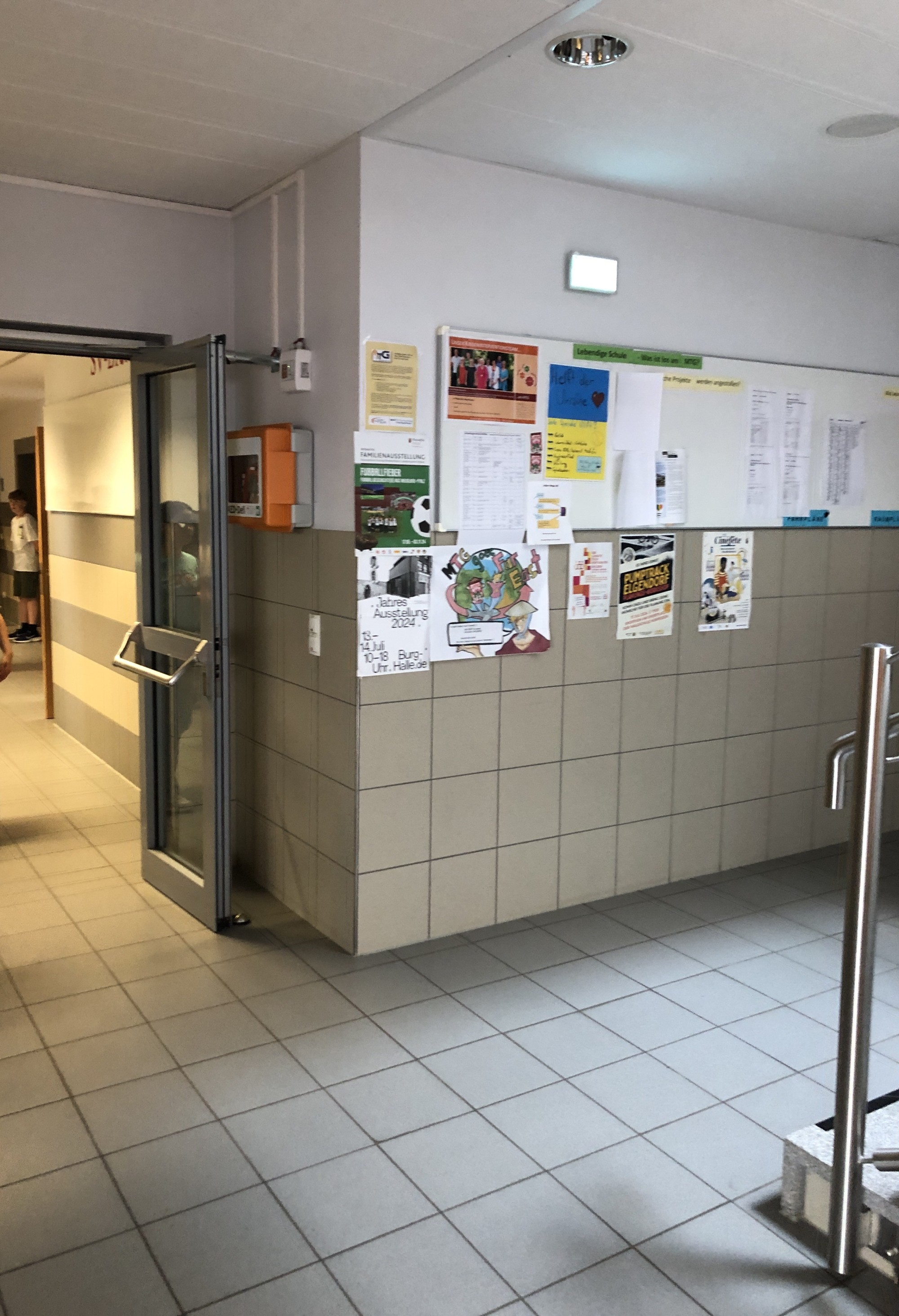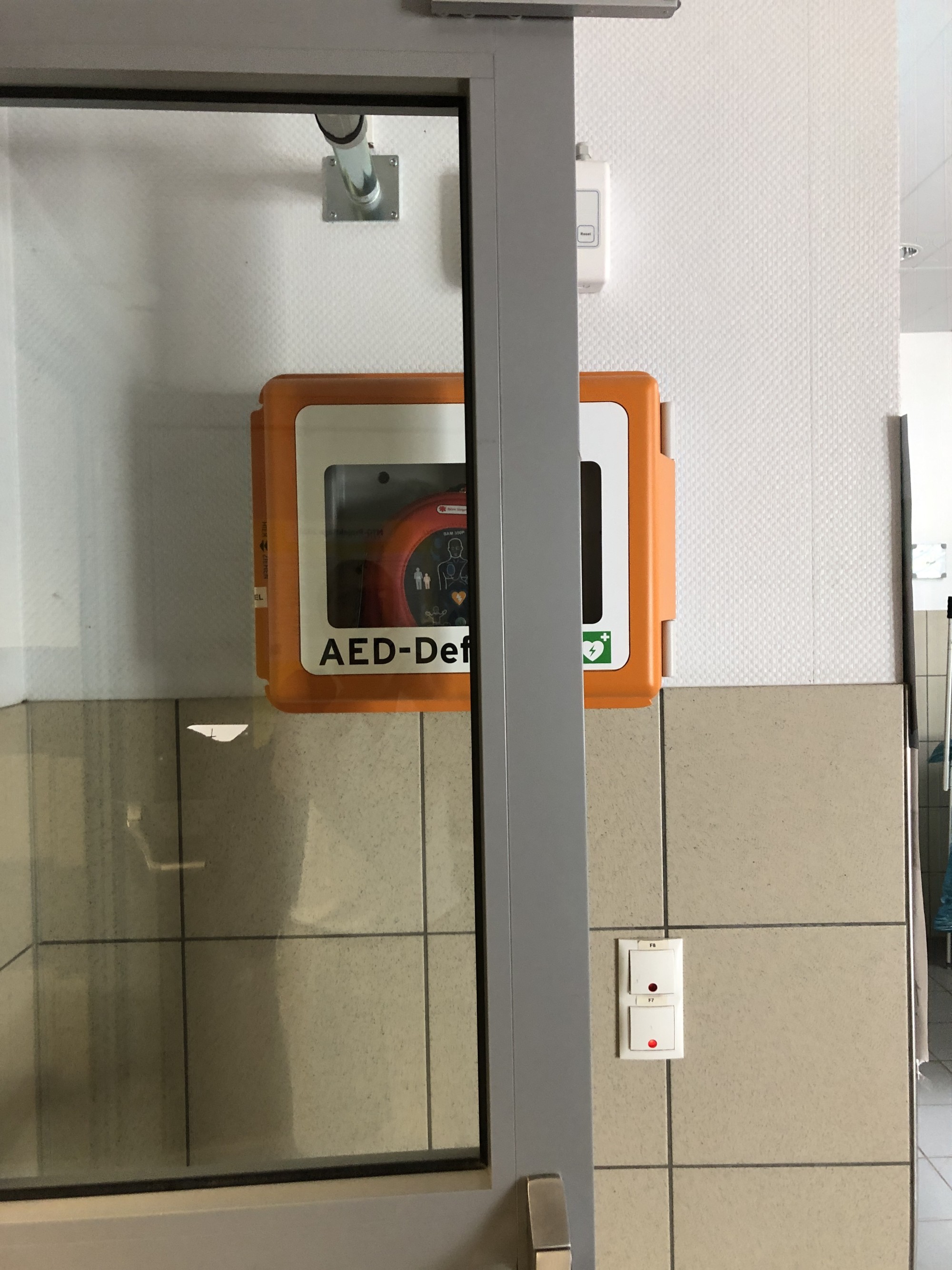 Zum Abschluss wurde noch die Anwendung eines AEDs (automatischer externer Defibrillator) erklärt und ein AED, der von der Firma SMS medipool zur Verfügung gestellt wurde, demonstriert. Ein solcher AED befindet sich auch im Eingangsbereich des MTG.