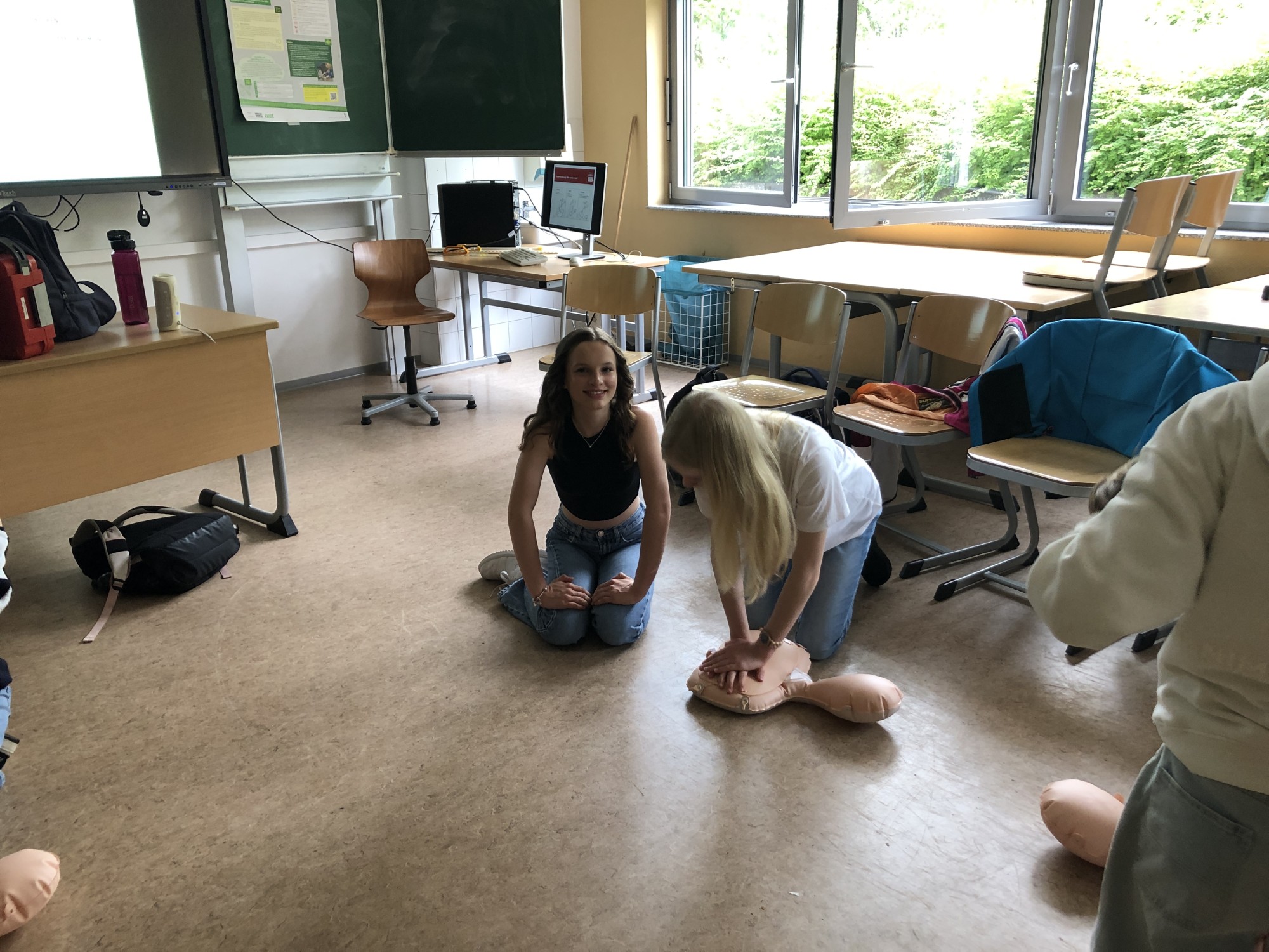 Gemeinsam mit den Schülerinnen und Schülern wurden die Wichtigkeit der Laienreanimation und die Vorgehensweise bei einem Herzstillstand erarbeitet.