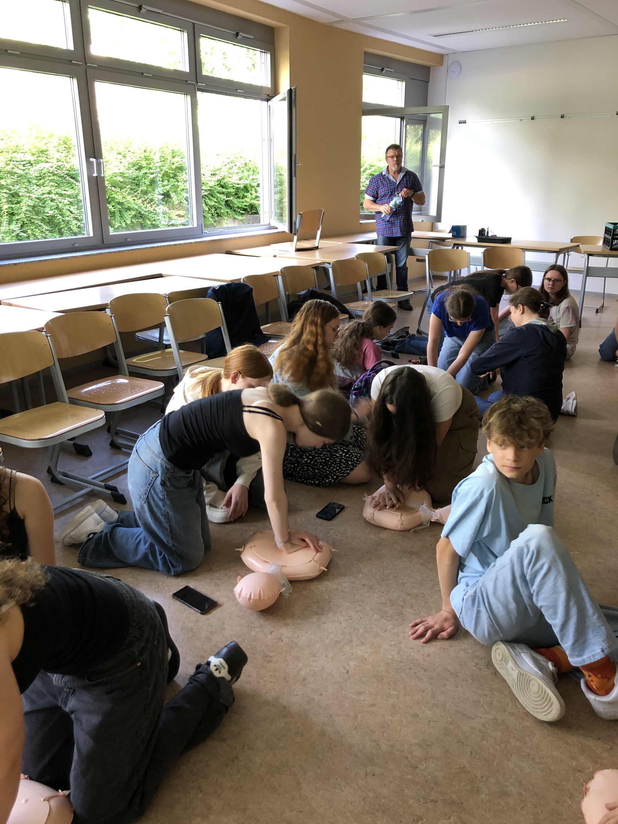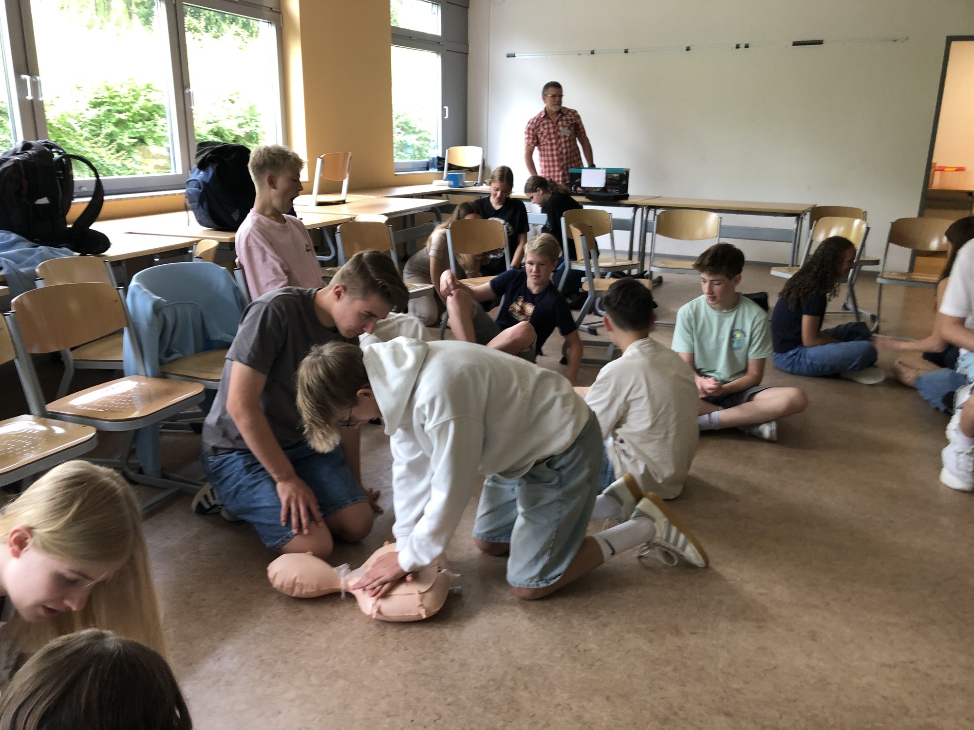 Die Resonanz der teilnehmenden Schüler und Lehrer war sehr positiv. Alle waren mit großer Begeisterung dabei und schnell kam der ein oder andere bei den Reanimationsübungen ins Schwitzen.