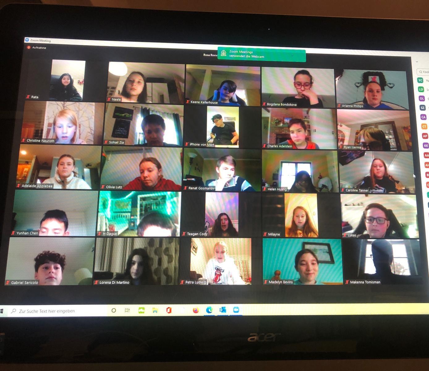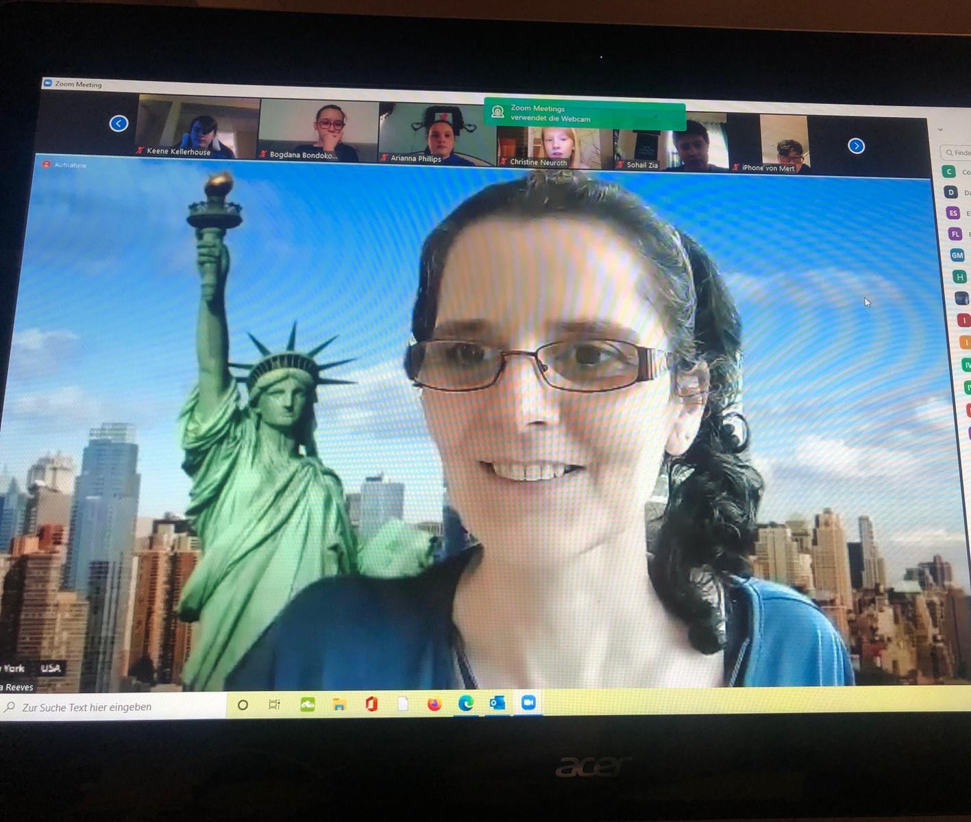 Während die Technik im Fernunterricht noch „ruckelt“ und Videokonferenzen mit ausgeschalteter Kamera als Audiokonferenzen stattfinden, hatten 34 Kinder der Klassen 5e und 5f das Vergnügen, mit ca. 30 Kindern aus dem Bundesstaat New York in Amerika in einer Zoom-Konferenz mit eingeschalteten Kameras zu sprechen.