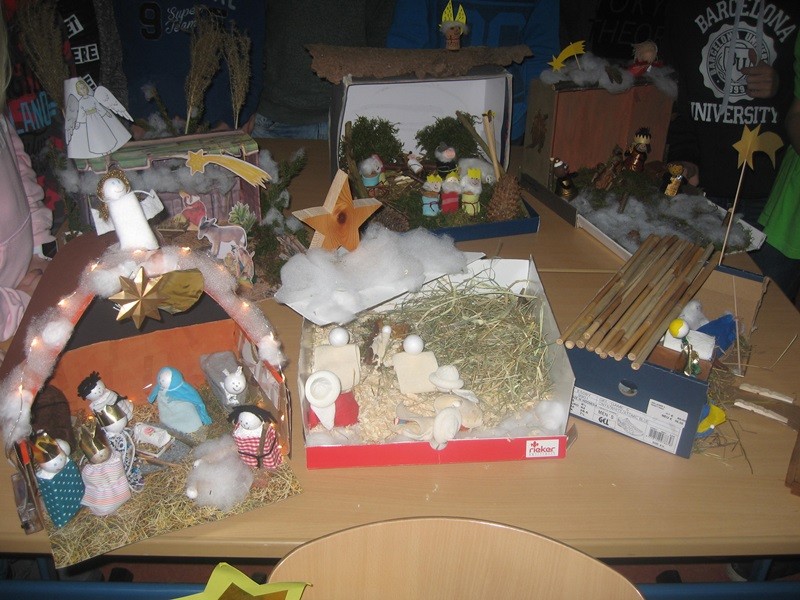 Zu Beginn der Adventszeit stellten die Schülerinnen und Schüler ihr besonderes Können unter Beweis und bauten in Kleingruppen Weihnachtskrippen. Die fertigen Ergebnisse sind derzeit im Lichthof unserer Schule zu bewundern.