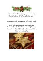 Wir laden herzlich zu unserem Weihnachtskonzert am 19.12.2024 um 19 Uhr in der Aula ein.
